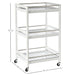 Boasting three generously-sized trays, this trolley presents ample space to hold kitchenware, office supplies, decorative items, and more. Its secure construction, featuring sturdy panels and a gleaming stainless steel bar on each level, provides peace of mind by preventing items from toppling over as you move the cart.