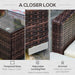The rattan weave gracefully wraps around a sturdy, powder-coated aluminium frame, offering both elegance and endurance against the elements. Merging form with function, our wicker set is able to withstand varying climatic conditions while maintaining a sleek and sophisticated aesthetic.