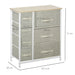 The unit's clean lines and neutral tones offer a canvas of simplicity that will integrate smoothly with your existing furnishings. Its expansive design incorporates seven drawers, coupled with a generous, flat top surface, which collectively provide an abundance of storage potential. The surface is ideal for showcasing cherished photographs, verdant plants, or your favorite decorative items, making it as practical as it is charming.