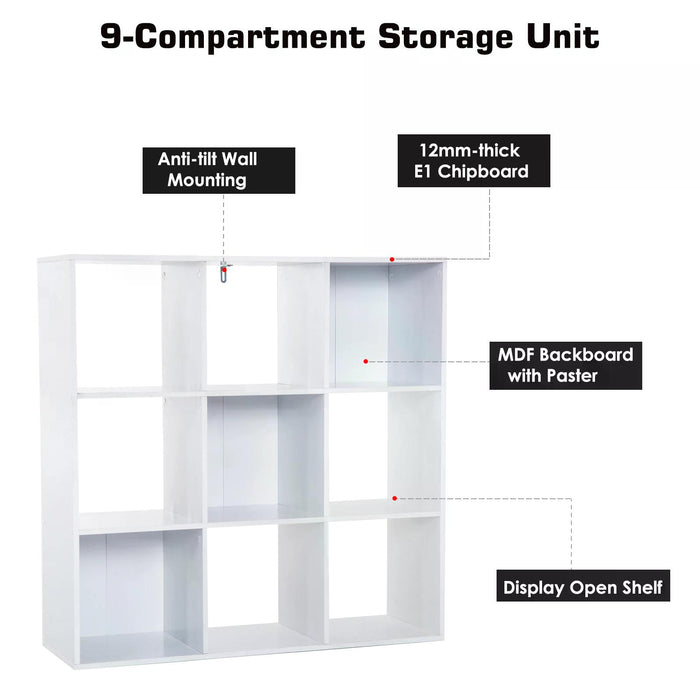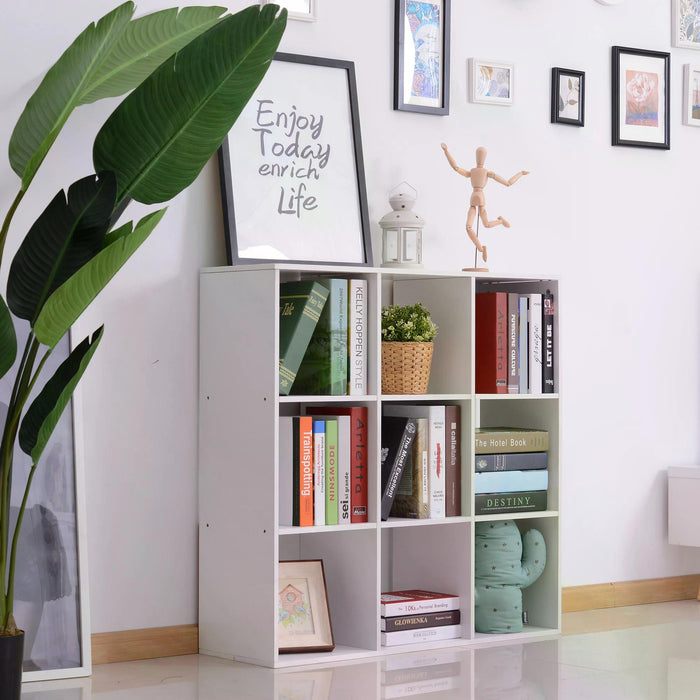 Equipped with nine sizable compartments, this storage unit allows for countless organizational configurations. Each 28 x 29 x 28 cm compartment is adept at keeping your books, collectibles, and essentials systematically positioned for easy access.