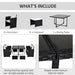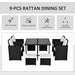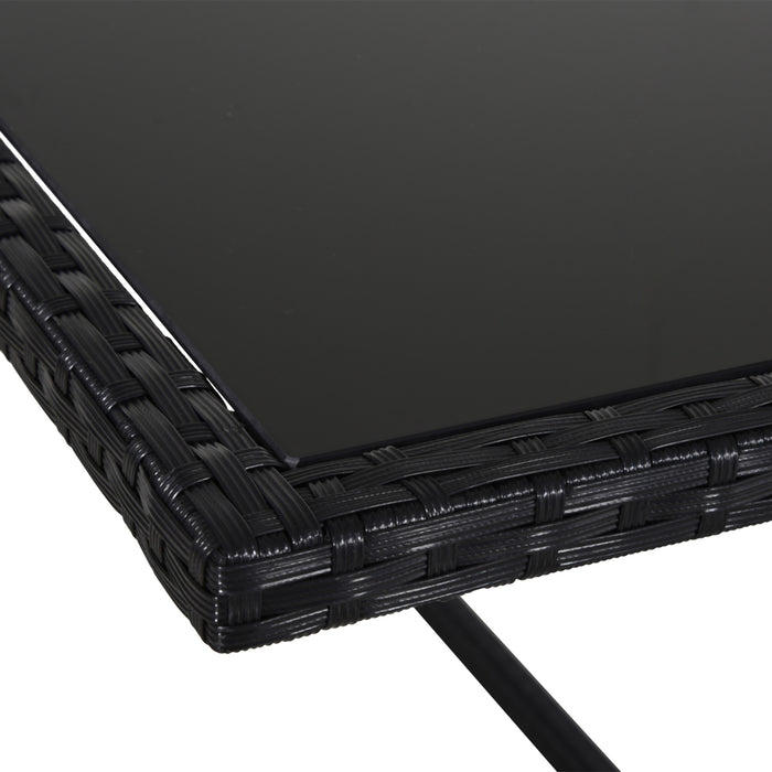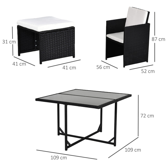 Adorned in a classic black with milk white cushions, this dining set seamlessly blends sophisticated design with the natural beauty of your outdoor setting. Constructed using a sturdy metal pipe frame, PE rattan, and soft polyester fabric, this set is a testament to enduring elegance and comfort.