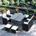 When ample seating meets innovative design, you get our cleverly compact rattan cube dining set. This marvel of space efficiency allows you to tuck the chairs and stools neatly beneath the table, thus enabling a tidy and space-saving configuration when the set is not in active use - an ideal solution for hosting without sacrificing valuable outdoor space.