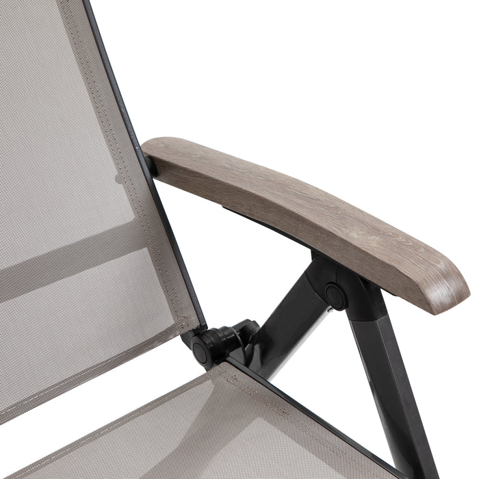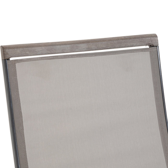 The tactile pleasure of our sun lounger is amplified by the breathable mesh fabric, crafted to cradle your body with a kind touch, ensuring softness alongside durability. The combination of a generously sized seat and supportive backrest, complemented by soothing armrests, provides a cocoon of comfort for endless hours of relaxation.