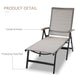Featuring an adjustable backrest, our sun lounger encourages you to find your ideal angle of repose with five distinct positions at your service. From an upright posture to a fully reclined state, transition smoothly to match your current mood or activity—be it basking in the sunshine or enjoying an afternoon siesta.