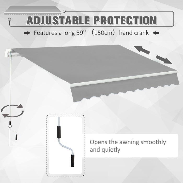 Enjoy the ease of adjusting shade coverage with its user-friendly hand crank mechanism. Engineered for effortless operation, this awning extends smoothly and quietly, ensuring your peace and comfort. No electricity or power cords needed, providing you the freedom to install the awning in a variety of outdoor locations.