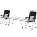 Complementing the table are two meticulously designed folding chairs, each boasting a three-level reclining back for personalized comfort. Adjust the angle effortlessly and find your perfect posture, whether you're basking in the sun, enjoying a meal, or settling in with a good book. The chairs' armrests and removable head pillow add an extra layer of relaxation, encouraging you to lounge for hours. Structurally, each chair features a strong metal frame to provide an unwavering support, ensuring you feel secure and comfortable at all times.
