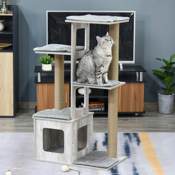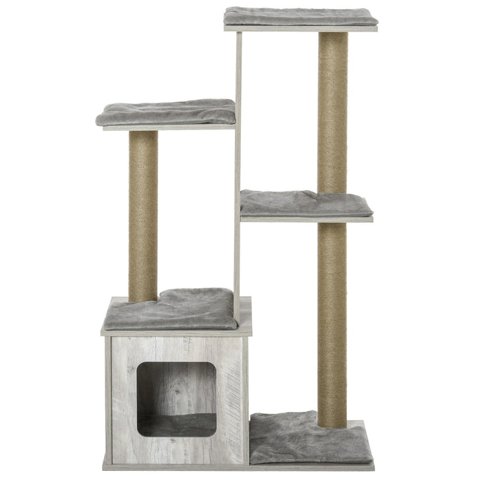 Introduce a touch of comfort and adventure into your indoor cat's daily life with our multi-tiered activity center. This enchanting cat haven is crafted to encourage play, exercise, and relaxation, providing your beloved pet with an all-in-one solution for their instinctive needs.