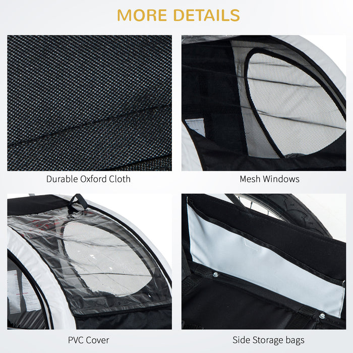 No need to leave behind your essentials or your child's favorite toys; our trailer boasts a generous storage area behind the seat. This feature, combined with its spacious interior that accommodates up to two kids, makes it a must-have for active families on the go.