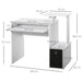 The workstation is designed not only to catch the eye but to cater to your work needs effectively. It boasts a stylish medium-sized tabletop, perfectly accommodating your laptop and writing materials. The integrated pull-out keyboard tray smoothly slides out for ergonomic typing comfort. On the side, a cleverly placed open shelf provides quick access to your printer or other essentials, while the spacious bottom drawer offers ample concealed storage for a clutter-free area.