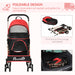 Navigate with ease thanks to the stroller's smooth-gliding EVA rear wheels, complete with a reliable braking system for safe parking. The freely moving front wheels ensure a bump-free ride, while dual safety leashes firmly secure your pet inside the stroller, providing peace of mind during your strolls.