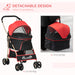 Pets can enjoy the spacious interior of the stroller and effortless entry through both front and rear openings. The four-stage adjustable canopy provides plentiful angles for access, ensuring that the rain cover does not hinder your pet's movement in and out of their cozy nook.
