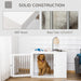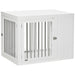 Introducing a beautifully crafted, dual-purpose haven for your beloved pet. This elegant piece seamlessly combines the functionality of a safe and cozy pet crate with the stylish utility of a charming side table. Adorn your space with this ingenious furniture piece that ensures comfort for your four-legged friend, while also serving as a sophisticated addition to any room.