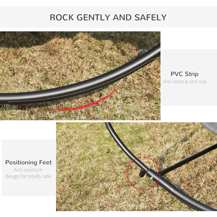 Welcome to the ultimate relaxation experience with our oversized two-person rocking lounge. Melding modern design with the timeless joy of outdoor relaxation, this lounge allows you and a companion to gently sway in a smooth, zero-gravity motion. Find refuge in the embrace of its sturdy steel frame and the comfort of its padded texteline fabric.