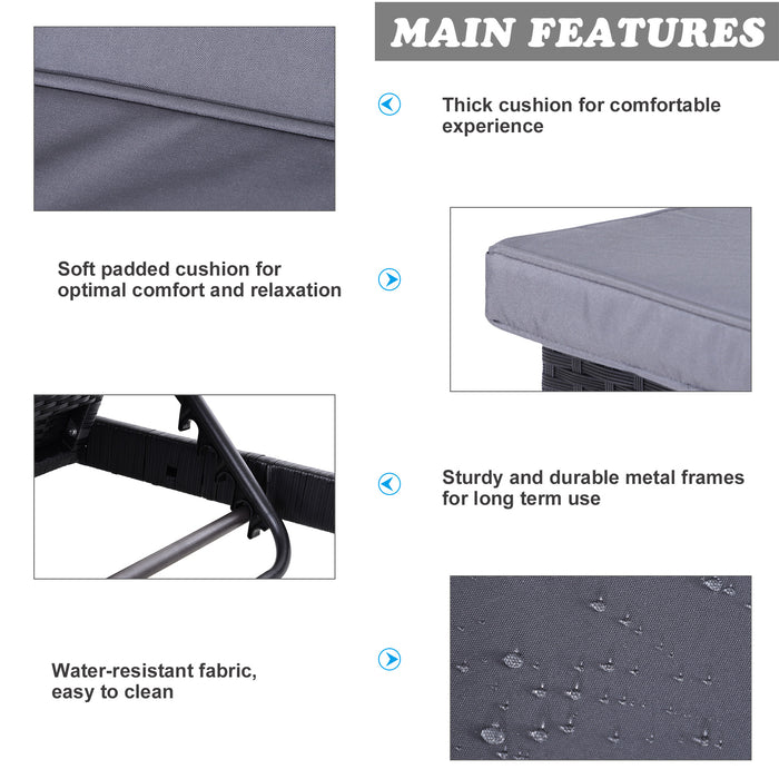 Cherish the sunny days with our sleekly designed pair of sun loungers, detailed in a chic mixed grey hue. With the solid metal frame encased in lasting wicker rattan, the loungers are refined for peak durability and outdoor protection. Their maintenance is as simple as a swift wipe with a damp cloth, ensuring your set remains pristine through the seasons.