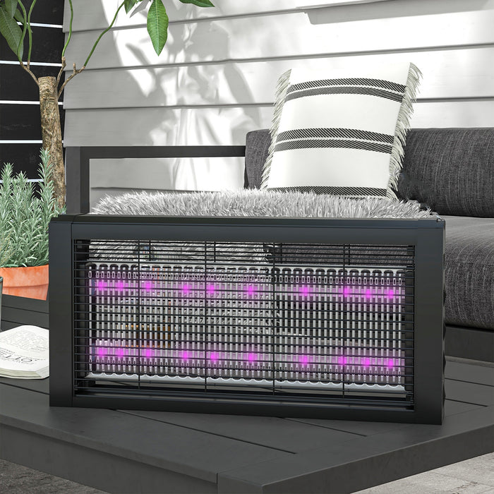 Encased in a sleek black design, the sturdy ABS and metal construction ensures durability. The zapper operates on a modest 8 watts of power and continues its action for 10 seconds post power-off. Electric grid measures an effective 40L x 14H cm, with the protective net dimensions at 43.5L x 19H cm. Complete with a 120cm power cord and adhering to multiple certifications (CE-EMC/LVD, ROHS, ERP), reliability is at the forefront.