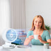 The fan's compact stature and portability make it an ideal choice for any setting. Easily place it on a desk, bedside table, or in any room where space is at a premium. Despite its size, this fan projects a robust breeze that can be felt from across the room.
