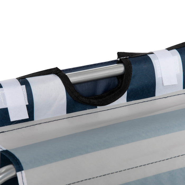 Structural integrity is at the forefront of our lounger's design. The robust metal frame, complete with a durable powder-coated finish, serves as a sturdy foundation for countless beach outings.
