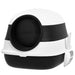 Cleaning is a breeze with the inclusion of a handy scoop and an innovative lid that lifts effortlessly for interior access. A designated storage spot for the scoop prevents misplacement. Thanks to the litter box's high-edge construction, litter remains inside the tray, keeping the surrounding area spotless.