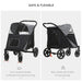 With dimensions of 100H x 112L x 65W cm, this pet stroller comfortably accommodates medium and large-sized pets up to 30 kg in weight and 60 cm in length. Inside, a roomy cabin ensures a laid-back journey for your pet, be it around the block or through bustling city streets.