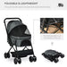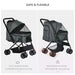 Designed for effortless maneuverability, the stroller boasts four durable wheels; the front wheels rotate smoothly through 360°, empowering you to steer with grace. The rear wheels come equipped with efficient braking systems to keep the stroller stationary when needed. A highlight of this stroller is the reversible handle, giving the choice of facing your beloved pet or the path ahead, fitting your mood and preference.