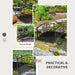 This elegant garden bridge measures a comfortable 122L x 61W x 42H cm in size, with a walkable bridge floor width of 57cm. The side rails are thoughtfully designed at 100L x 42H cm, offering ample space for secure hand placement. The rail post spacing of 47cm ensures an open yet protected walkway, while the maximum spanning distance is a generous 113.5cm, suitable for various garden layouts.