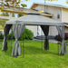 The gazebo's overall dimensions extend to 295L x 295W (cm), offering ample space for furniture and guests. The dark grey color exudes modern refinement, seamlessly blending with a variety of outdoor decor styles. Assembly is a breeze with the included instructions, ropes, and ground nails, ensuring your outdoor retreat is ready for enjoyment in no time.