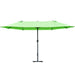 Dressed in a vibrant green hue, the umbrella radiates vitality and blends harmoniously with natural surroundings. Constructed with high-grade metal and resilient polyester fabric, this parasol promises to be a lasting companion to your outdoor furniture ensemble.