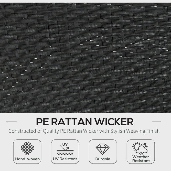 Meticulously crafted with hand-woven PE rattan wicker, our furniture resists the elements gracefully while maintaining its timeless appeal. This exquisite material is draped over a sturdy, rust-resistant frame to withstand the test of time and provide reliable support during countless leisure hours.