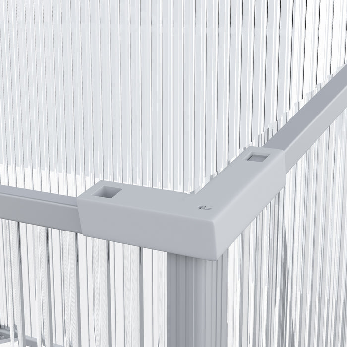 Witness your garden flourish under the transparent polycarbonate panels of our compact greenhouse. These panels expertly transmit sunlight while retaining essential heat, facilitating early seed germination and extending the growing season for your plants.
