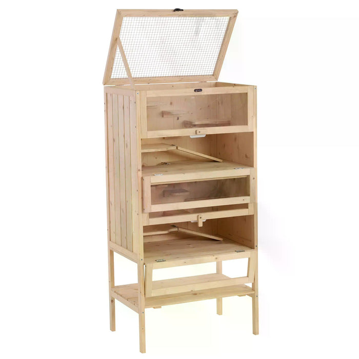 The habitat's assembly is straightforward, emphasizing your convenience. Presented in a lovely natural wood colour, it complements any room aesthetics while offering a nurturing space for your pets. The fine details include: