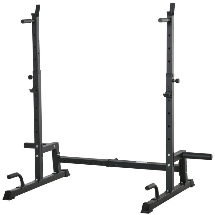 Constructed with high-grade steel and finished with a wear-resistant powder coating, our barbell squat rack endures through intense daily workouts. The thoughtful addition of four rubber feet assures a solid foundation, while foam handles provide a soft grip to maintain form and comfort. The practical design, fit for the home environment or a professional gym setting, supports barbell exercises and includes a push-up stand for a well-rounded fitness routine.