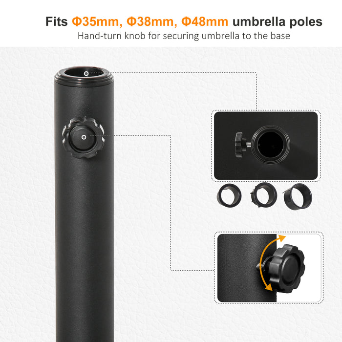 This umbrella stand is designed to accommodate a wide range of parasol sizes. Whether your umbrella pole is slender at 35mm, standard at 38mm, or thicker at 48mm, rest assured that this versatile base is engineered to provide a snug and secure fit for your parasol.