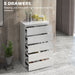 Constructed with high-quality particle board, this chest of drawers is built to withstand the rigors of daily use, ensuring both stability and durability.