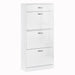 Our innovative shoe cabinet optimizes your space with a pull-out top drawer complemented by three additional tilt-out compartments, allowing for up to eighteen pairs of shoes to be neatly tucked away. This clever design ensures that each pair is easily accessible while keeping your space tidy and welcoming.