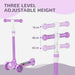 As parents, we all know kids grow at lightning speed. That's why we've designed our scooter with three height settings (63/68/76cm), easily adjustable to match the growth spurts of children from 80 to 120cm tall. The thermoplastic elastomer (TPE) handlebar is crafted to provide a non-slip, comfortable grip, perfect for those little hands learning to steer.