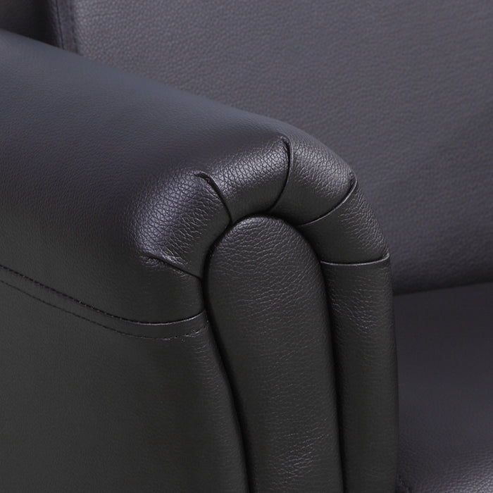 The timeless black design radiates elegance and versatility, easily integrating into a variety of living spaces. The smooth contours, including gracefully rolled armrests, enhance the visual appeal while being perfectly scaled for tiny frames.