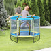 A safety net encloses the perimeter of the trampoline, preventing falls. The padded steel poles not only support the netting but also serve as a cushioned barrier to keep jumping joyously risk-free.