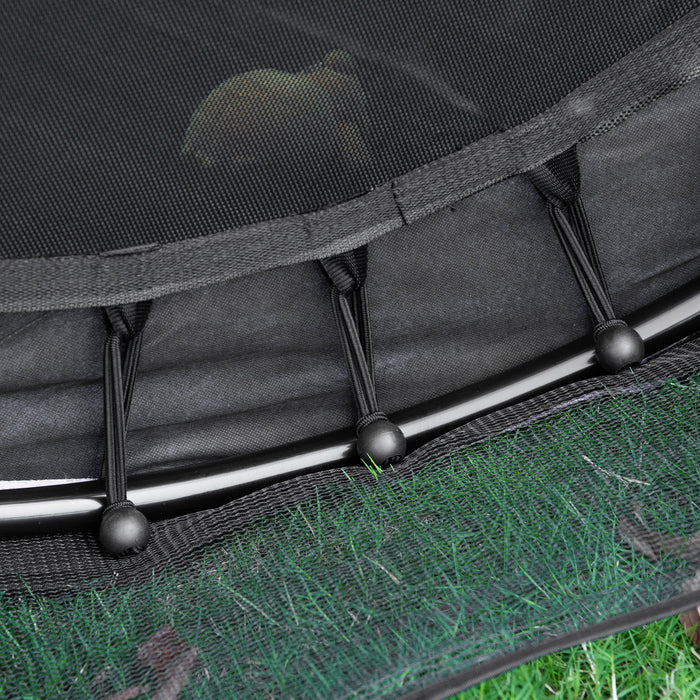Boasting a robust steel frame, this trampoline is built to endure playful antics, with anti-rust properties that extend its life. The frame's solid construction is complemented by thick foam sleeves for additional security and outdoor resilience.