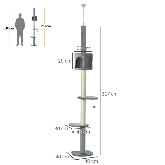 With a generous groundwork of 40L x 40W cm and a ceiling-reaching height that extends from 217 cm to fit heights between 229-235 cm and 260-266 cm, it easily accommodates feline friends up to 5 kg. Its adaptability to different spaces and easy assembly make it a flexible addition to your home, giving your cat a personalized skyscraper for their daily adventures.