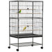 Transporting this well-constructed parrot cage is hassle-free, courtesy of its sturdy rolling stand equipped with four universal wheels. It's built to safely glide across floor surfaces, allowing pets to enjoy different views or be part of family activities. Additionally, the lower shelf offers a practical storage space for essential bird care items.