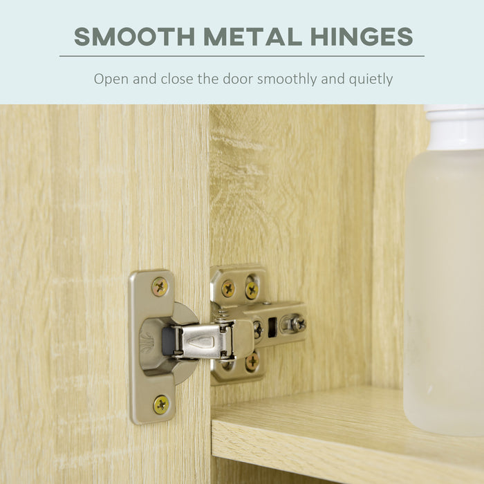 The refined structure features cushioned hinges allowing the door to softly open and close, mitigating any sudden slams. A design-centric gap at the bottom of the door ensures ease of access while the meticulously selected melamine-coated MDF material offers resilience against moisture and simplifies clean-up.