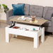 Not only does it offer versatile functionality, but this coffee table also brings a touch of modern sophistication to your living space. With its crisp lines and minimalist aesthetic, it seamlessly blends with any decor scheme, exuding class and practicality.