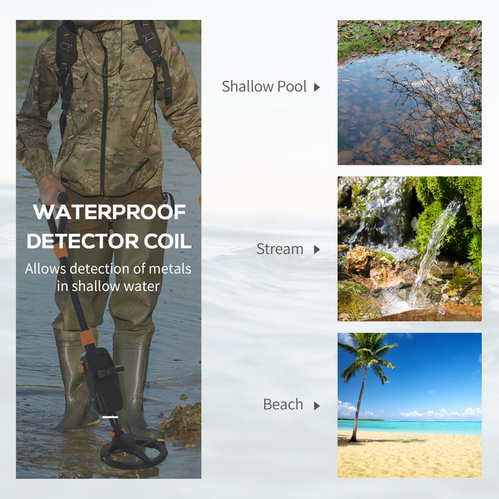 Equipped with a sharp LCD display and an audio system, our metal detector ensures you will not miss a single find. The crisp screen provides real-time feedback, while the distinct audio alerts sound off as you approach metal objects, guiding you closer to your hidden treasure.