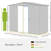Our shed stands out with its resilience, constructed to endure daily use with a steel structure and galvanized finish that resist corrosion. The sloped roof not only aids in water drainage but also adds to the structural integrity, resisting snow load with ease.