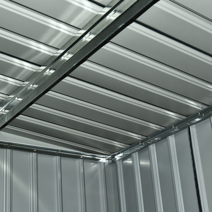 Stand up to the elements with confidence, thanks to this shed's galvanized steel framework. It's been meticulously crafted to endure the rigors of outdoor conditions, while the protective top coating adds an extra layer of resilience against mild weather, ensuring your belongings stay secure and dry year-round.