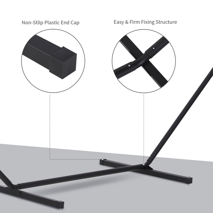 A versatile addition to your indoor or outdoor spaces, this hammock stand's extra length and stability allow you to set up a relaxation area in multiple locations. Plus, when it's time to change your environment, assembly is straightforward and user-friendly, allowing you to transition your comfort zone to wherever you desire.