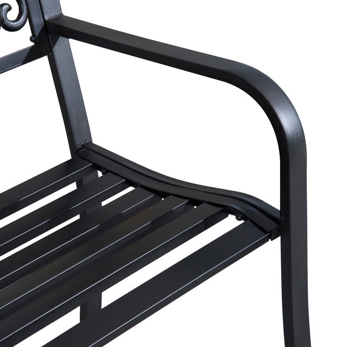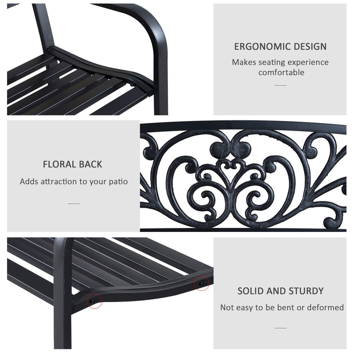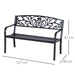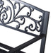 The exquisitely crafted powder-coated finish not only embellishes your garden but also provides extra protection against the elements. The intricate floral pattern adorning the backrest enhances the bench's visual appeal while complementing your garden's natural charm.