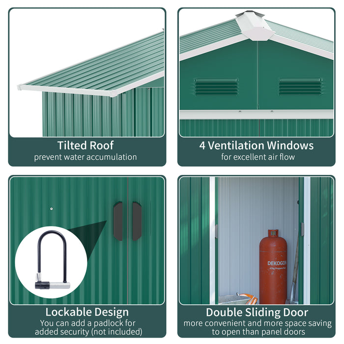 Impeccably sized at 184H x 194L x 110D cm with an inner dimension that offers extensive storage, the design boasts a sloping roof to prevent water accumulation, contributing to the shed's longevity and your convenience.