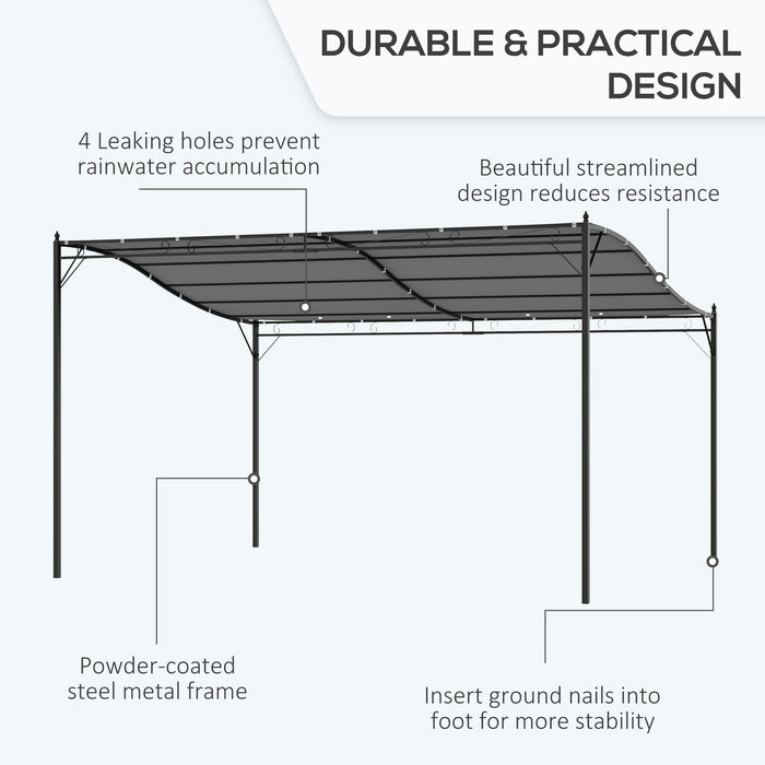 Carefully sized with dimensions of 395L x 297W cm, featuring a front height of 198cm and a back height rising to 254cm—it accommodates various settings with ease. Though assembly is required, it's a straightforward process that leads to a rewarding enhancement to your outdoor living space.
