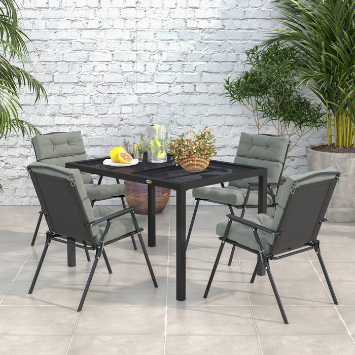 Whether you're enjoying a sunny brunch or an evening soiree under the stars, this table is a quintessential outdoor piece. Simple to assemble, it's ready to be part of your special gatherings in no time. Outfit your space with this grey, steel-structured dining table, offering both beauty and functionality to your outdoor escapades.